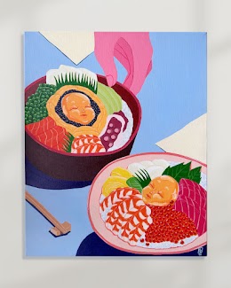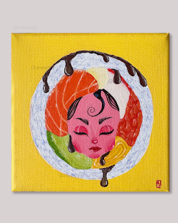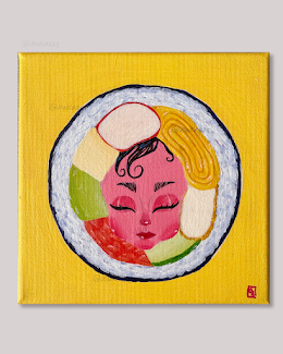 An adorable sushi character from my ongoing series, capturing the charm and delight of enjoying good food. Mona represents the simple joy and sweetness that comes with sharing meals, with her cute face adding personality to this piece. This artwork brings together my love for sushi and character design, creating a whimsical addition to any food lover's collection.